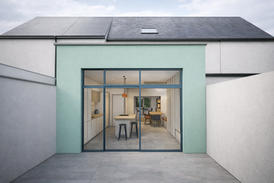 The new intervention introduces a more open layout designed to improve spatial flow and bring light and air deeper into the home. By opening the ground floor toward the garden and introducing large windows and a rooflight, the extension transforms the living experience of the house.